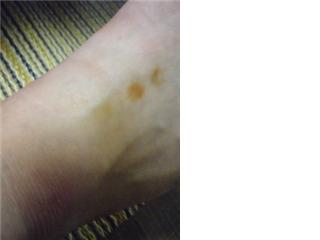 ちょうどあとついてる位置の靴のベルトに金具があったみたいで。。。